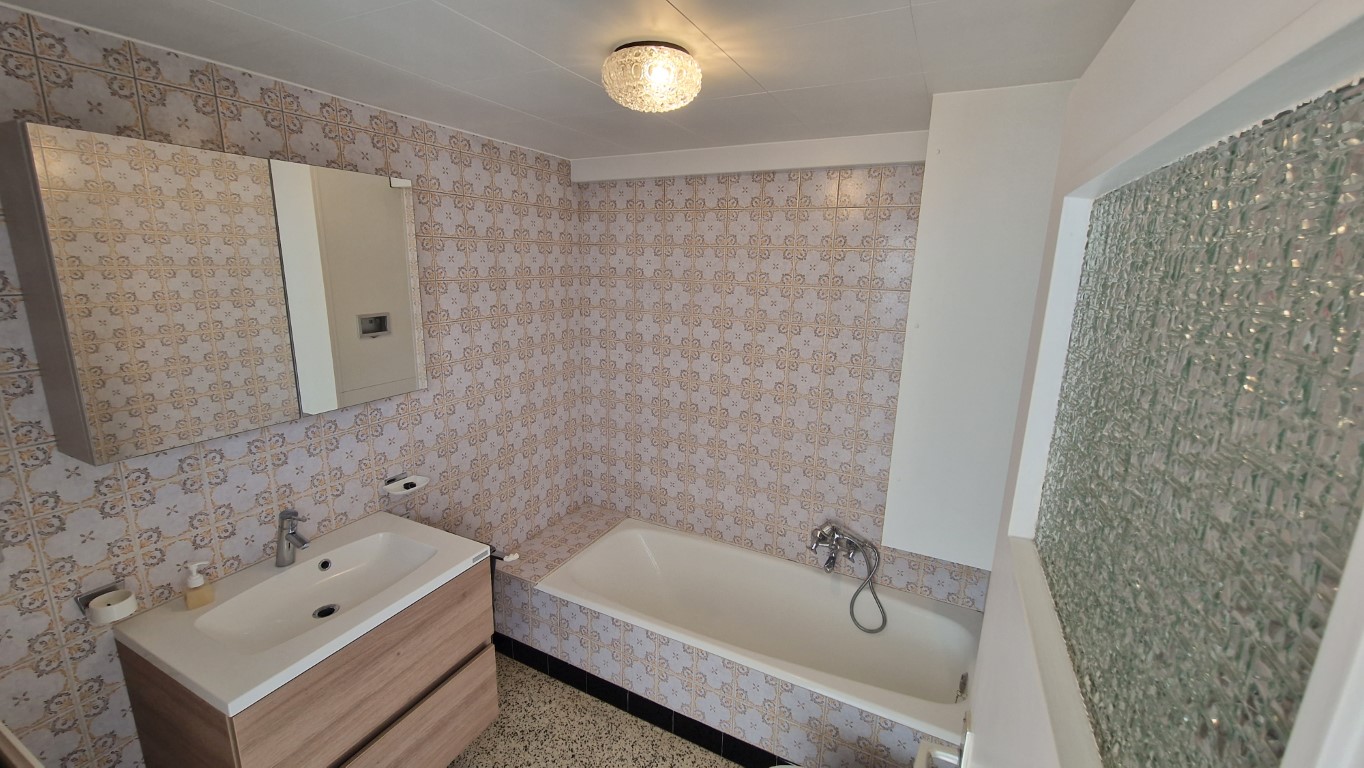 Aansluitend vinden we een vernieuwde keuken met zicht op de tuin, apart toilet, badkamer en een vaste trap naar een koele, droge kelder.