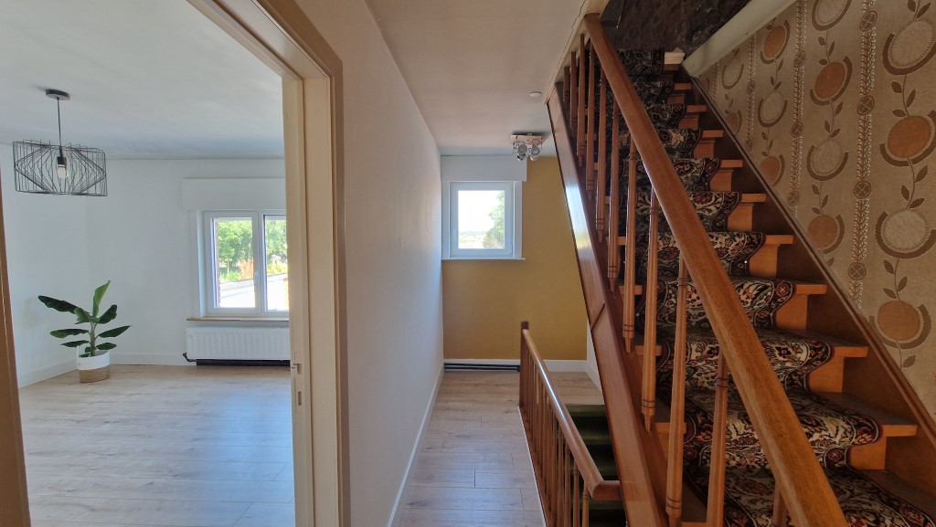 De woning is volledig opfrist, vernieuwde keuken, vernieuwde elektriciteit, boven werd volledig geschilderd en voorzien van laminaat. Ook de zolderverdieping is voorzien van laminaat zodat je gebruik kunt maken van deze polyvalente ruimte met zitbank als 4e slaapkamer of als hobbyruimte of speelkamer.